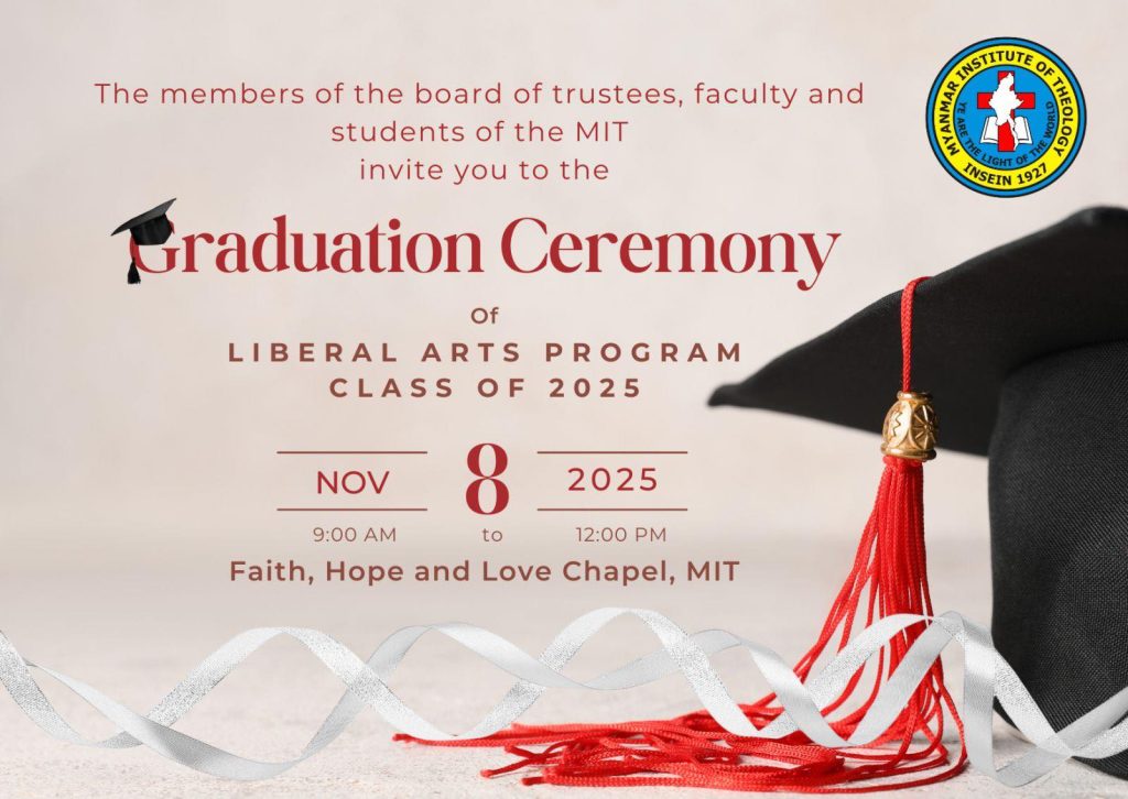 Liberal Arts Program-Graduation Ceremony (2025) / News and Event / By Min Latt Myanmar Institute of Theology Liberal Arts Program Graduation CeremonyClass of 2025November 8, 20259:00 AMFaith, Hope & Love ChapelGlobal Education Building